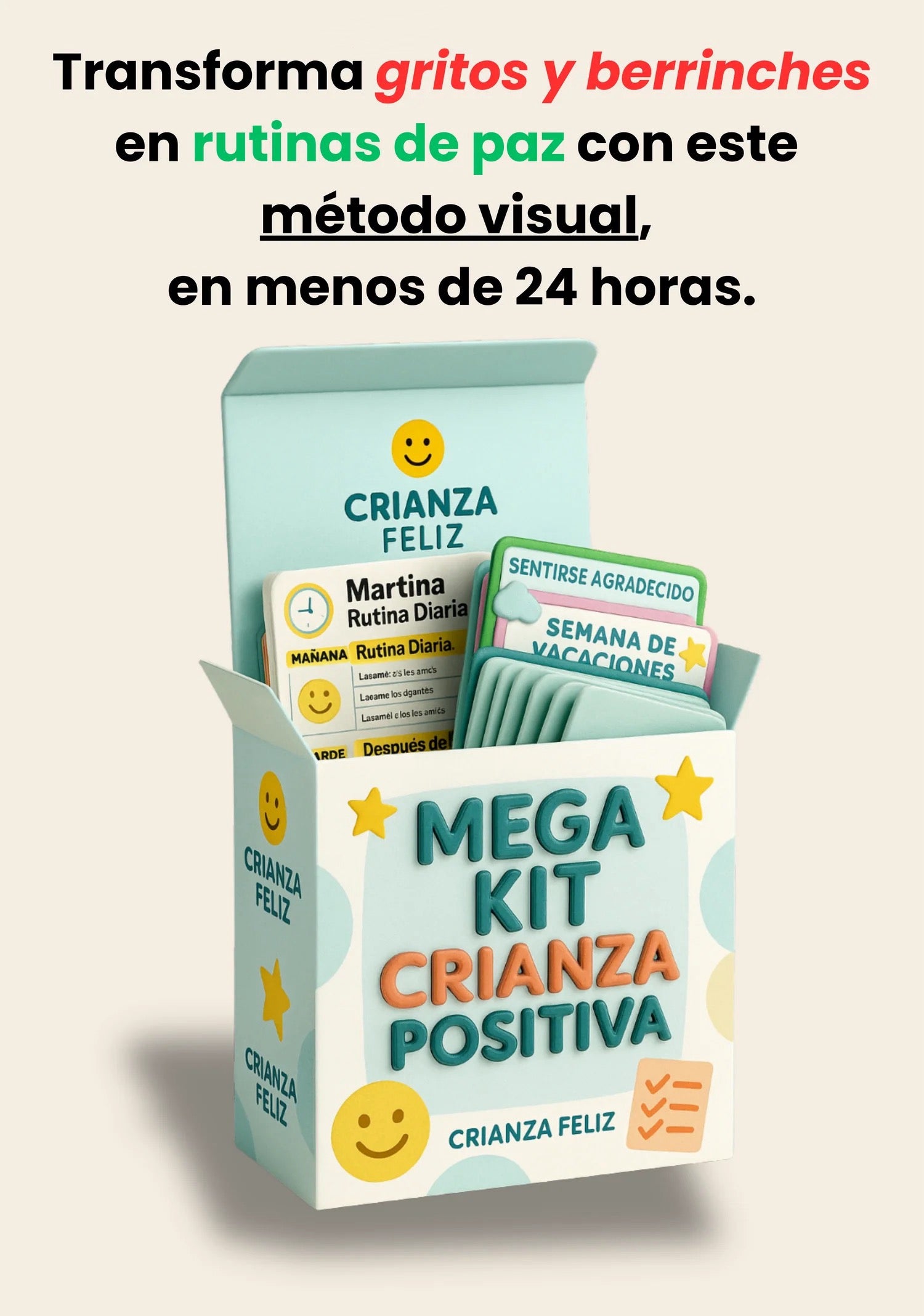 Nuestro Mega Kit de Crianza Positiva funciona como una hoja de ruta clara para que tus hijos sepan qué hacer sin que tengas que repetirlo mil veces (ni levantar la voz).
